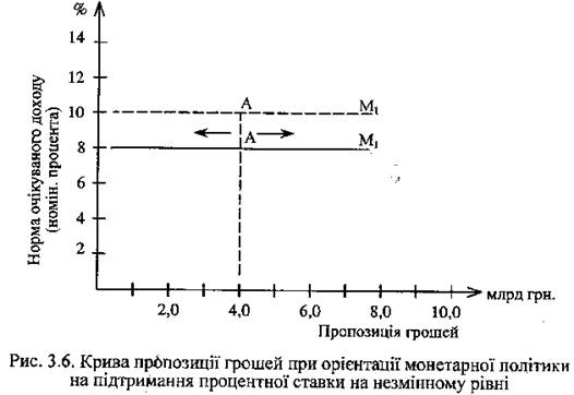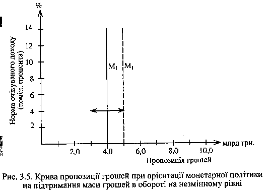 пропозицію грошей, повинні орієнтуватися на зміну попиту на гроші, а не