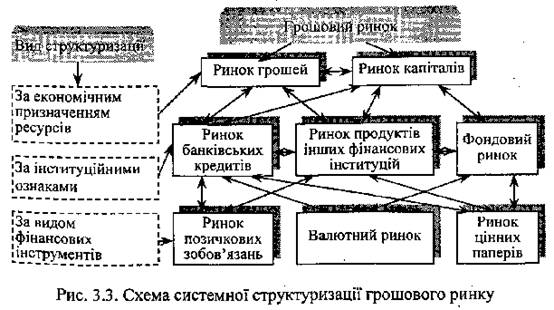фінансово-кредитних установ; за третім критерієм - на ринок грошей і ринок