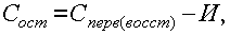 где Соб – стоимость приобретенного оборудования; Смр - стоимость монтажных работ; Зтр – затраты на транспортировку; Зтр – прочие затраты. Первоначальной стоимостью основных средств, внесенных в счет вклада в уставный (складочный) капитал организации, признается их денежная оценка, согласованная учредителями (участниками) организации. Первоначальной стоимостью основных средств, полученных организацией безвозмездно, признается их рыночная стоимость на дату оприходования. Первоначальной стоимостью основных средств, приобретенных в обмен на другое имущество, отличное от денежных средств, признается стоимость обмениваемого имущества, по которой оно было отражено в бухгалтерском балансе. Со временем стоимость воспроизводства основных средств изменяется и первоначальная стоимость уже не отражает их действительную ценность. Восстановительная стоимость соответствует затратам на создание или приобретение аналогичных основных средств в современных условиях. Для определения восстановительной стоимости основных средств проводят их переоценку путем индексации или прямого пересчета по документально подтвержденным рыночным ценам. Постепенная потеря стоимости основных средств отражается в оценке основных средств по остаточной стоимости. Остаточная стоимость представляет собой первоначальную (восстановительную) стоимость, уменьшенную на величину износа: