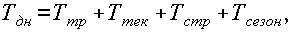 где Рс – среднесуточное потребление данного вида сырья или материалов (в рублях); Тдн – норма запаса в днях. Средняя норма запаса в днях исчисляется в целом как средневзвешенная от норм запаса оборотных средств по отдельным видам. Норма запаса в днях по отдельному виду, складывается из следующих составляющих: