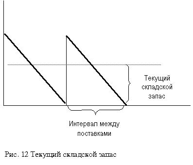 Ттр = (20 ×15 + 30 × 14 + 10 ×12) \ (20 + 30 + 10) = 14 дн. Текущим складским запасом материальных ценностей называют запас, обеспечивающий потребности производства на период между двумя очередными поступлениями их поставщиков (рис. 12).