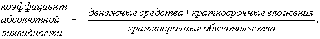 Модуль 8.2. ПОКАЗАТЕЛИ, ХАРАКТЕРИЗУЮЩИЕ ФИНАНСОВОЕ СОСТОЯНИЕ ПРЕДПРИЯТИЯ Показатели, характеризующие финансовое состояние можно условно разделить на группы, отражающие различные стороны финансового состояния предприятия. К ним относятся коэффициенты ликвидности; показатели структуры капитала (коэффициенты устойчивости); коэффициенты рентабельности; коэффициенты деловой активности. Степень платежеспособности предприятия обычно оценивается при помощи финансовых коэффициентов ликвидности: 1. Коэффициент абсолютной ликвидности рассчитывают как отношение денежных средств и быстрореализуемых краткосрочных ценных бумаг к текущей – краткосрочной задолженности: