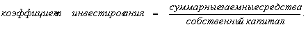 Считается нормальным, если значение показателя коэффициента автономии больше 0,5, то есть финансирование деятельности предприятия осуществляется не менее, чем на 50% из собственных источников. 2. Долю заемных средств определяют по формуле Данное отношение показывает, сколько заемных средств привлекало предприятие на 1 руб. собственных средств, вложенных в активы. 3. Коэффициент инвестирования - соотношение заемных и собственных средств – является еще одной формой представления коэффициента финансовой независимости: