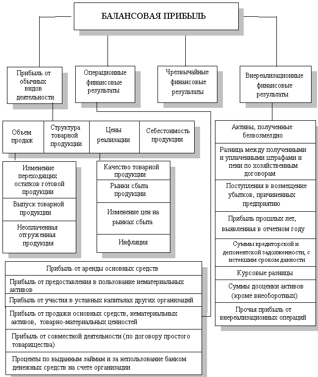 Балансовая прибыль включает в себя прибыль от обычных видов деятельности, финансовые результаты от операционных и внереализационных операций и чрезвычайных обстоятельств. Схема формирования балансовой прибыли представлена на рис. 14.