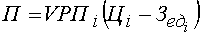 Следует проанализировать также выполнение плана и динамику прибыли от реализации отдельных видов продукции, величина которой зависит от трех факторов первого порядка: объема продажи продукции (VРПi), себестоимости (Зедi) и среднереализационных цен (Цi). Факторная модель прибыли от реализации отдельных видов продукции имеет вид
