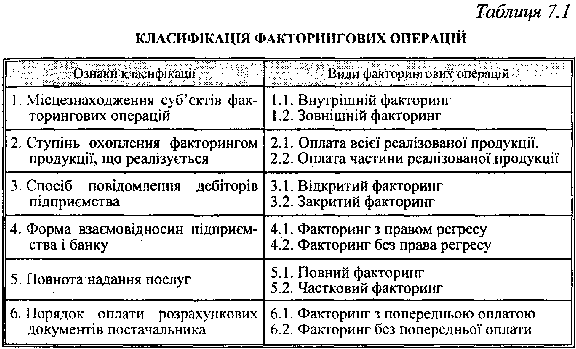 кредитування; овердрафт; сезонний кредит; факторинг.