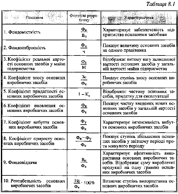 8.2. ПОКАЗНИКИ СТАНУ ТА ЕФЕКТИВНОСТІ ВИКОРИСТАННЯ