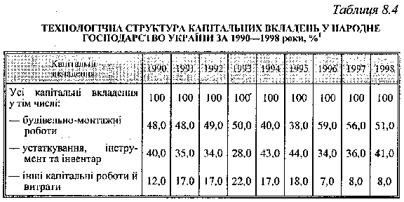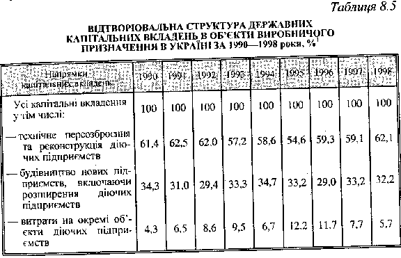 переозброєння та реконструкцію діючих підприємств (табл. 8.5).