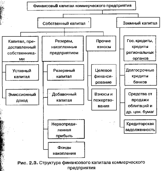 Состав финансового капитала коммерческого предприятия, являющегося одним из