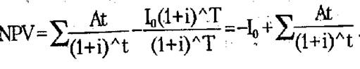 по проекту и не полученного с инвестиций 1о за срок Т ссудного дохода Io*(l+i)^T:
