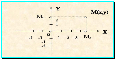 Положение точки М относительно выбранной системы координат определяется двумя координатами - абсциссой х (число, равное длине oмх) и ординатой у (длина oму). Эти два числа полностью определяют положение точки на плоскости.