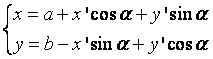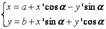 случай, когда новое начало координат есть точка О'(а,b) и ось О'х' образует с осью Ох угол a, то на основании формул (1.1.1) и (1.1.4)