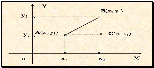 Так как длина АС = çх2 - x1ç, а ВС = çу2 - у1ç, тогда, используя (1.2), получаем