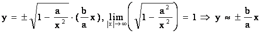 Пусть, например, х>0. Рассмотрим точки M(x,y), принадлежащую гиперболе и N(x,y/)- прямой, тогда