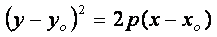 O/(xo,yo) - вершина параболы, р - параметр параболы, y = yo - ось симметрии параболы (ось параболы).