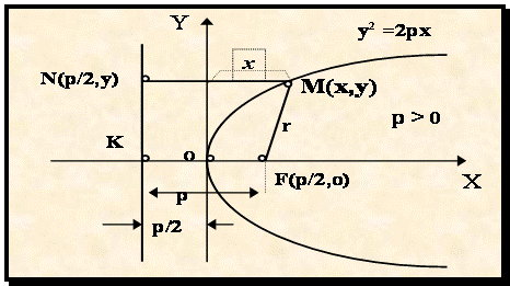 Точка F(p/2,0) называется ее фокусом; а прямая х = - р/2 - директрисой.