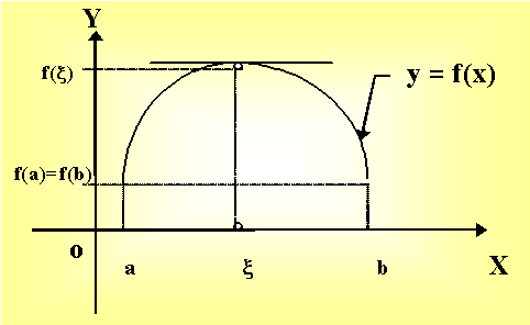 Если m ¹ M Þ из условия f(a) = f(b) следует, что хоть одно из значений m или M не принимается на концах [a,b]. Пусть, например, это будет точка М, т.е. существует xÎ (a,b), что f(x) = М. Тогда из теоремы 10.1 следует, что f/ = 0.