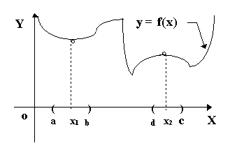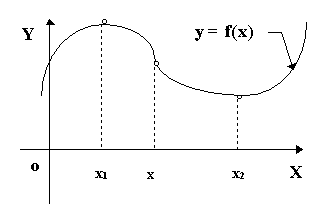 f(x2) < f(x) (х¹х2) в некоторой окрестности точки О(х2), то в точке х2 f(x) имеет минимум.