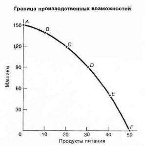PPF — это пример одного из наиболее важных графиков в экономической теории, который описывает зависимость между двумя экономическими переменными (такими, как продукты питания и машины, или оружие и масло). Ниже вы встретитесь и с другими типами графиков.