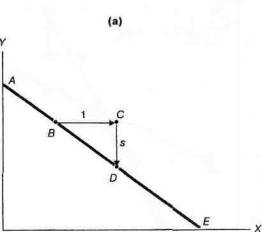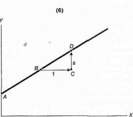 Так как перемещение ВС —это увеличение на 1 единицу по X, длина CD (обозначена как s на рис. 1А-3) показывает изменение по Y при изменении на единицу по X. На рисунке это изменение названо наклоном линии ABDE.