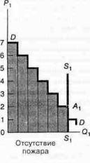 11. Задача на страхование. Проанализируйте проблему принятия решения потребителем по поводу того, совершать или не совершать покупку страховки от пожара; данная проблема иллюстрирована на рис. 11-3. Начерченные там кривые DD описывают предельную полезность пользования жильем («услуг жилья»); она в каждой ситуации является одинаковой. Домашнее хозяйство потребляет 6 единиц этих «услуг» при отсутствии страховки и пожара; в то же время, пожар уменьшает потребление на 5 единиц. При условии, что вероятность пожара равна одной пятой, рассчитайте ожидаемую полезность при отсутствии страхования, которая равна произведению вероятности возникновения каждой ситуации (наличие или отсутствие пожара) и полезности этой ситуации (изображенной областью под кривой DD для соответствующего уровня потребления). Объясните, почему рис. 11-3 (и) описывает случай, характеризующийся отсутствием страхования. Теперь сделайте допущение, что домохозяйство может купить страховку, полностью защищающую его от последствий пожара. Иными словами, оно заключает безопасное пари, поскольку страховая премия равна математическому ожиданию потери. Объясните, почему рис. 11-3(6) описывает случай, характеризующийся наличием страхования. Наконец, покажите, что темная область в крайней правой части этого рисунка измеряет выигрыш в ожидаемой полезности.