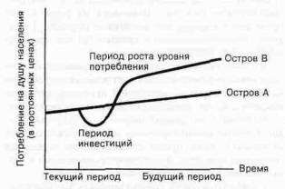 3. Третьим фактором производства является капитал, произведенный товар длительного пользования, который используется в дальнейшем производственном процессе. Вообще говоря, инвестиции в капитал представляют собой отказ от части текущего потребления. Отсрочивая сегодня потребление и производя здания или оборудование, общество увеличивает потребление в будущем. Существует технологическая закономерность, согласно которой косвенное производство порождает положительную норму дохода.