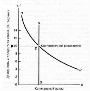 7. Посмотрите снова на рис. 14-5 и 14-6 и изучите движение экономики из краткосрочного равновесия при процентной ставке, равной 10% годовых, в долгосрочное равновесие. После этого объясните, что произошло бы в коротком и длительном периодах, если бы инновации сдвинули вверх кривую спроса на капитал. Что случилось бы, если бы государственный долг стал очень большим и подавляющая часть предложения капитала (со стороны домохозяйств) была бы поглощена за счет держания правительственной задолженности?