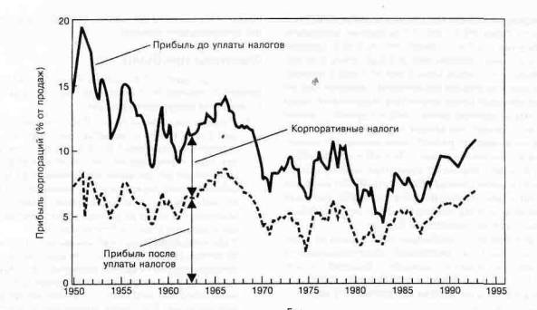 Рис. 14-7. Доля прибылей корпораций медленно уменьшалась