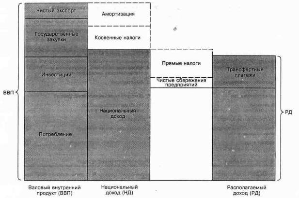 5. Двумя дополнительными официальными показателями являются национальный доход (НД) и располагаемый доход (РД). Последний из них показывает величину средств, которая фактически остается в распоряжении у людей (после осуществления всех налоговых выплат, сбережений корпораций в виде нераспределенной прибыли и трансфертных платежей) для их расходования на потребление или для их сбережения.