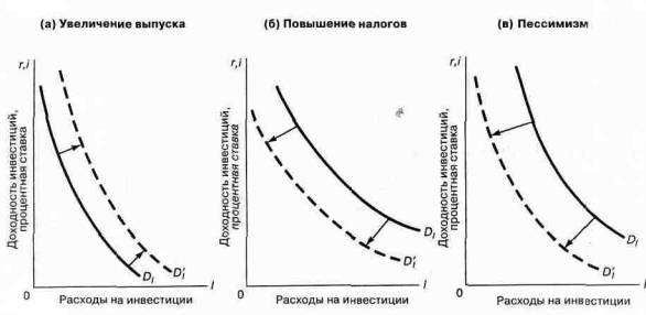 Мы видели, как процентные ставки воздействуют на уровень инвестиций. Но на инвестиции влияют и другие факторы. Например, как проиллюстрировано на рис. 23-11 (а), увеличение ВВП сдвинет кривую спроса на инвестиции вправо-вверх.