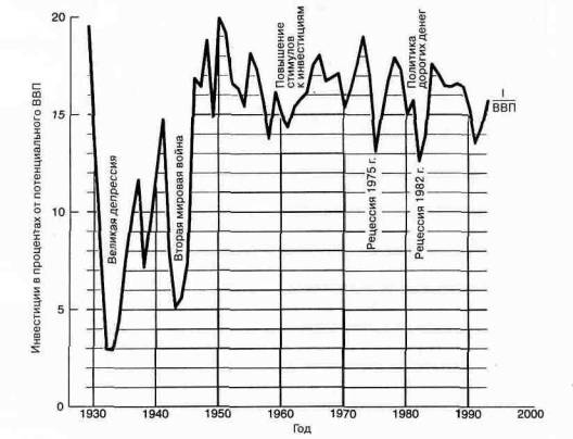 На рис. 23-12 изображена нестабильность инвестиций, представленных в виде процентной доли потенци-