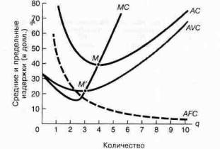 Теперь обратимся к графику (б). Кривая AC U-образна и лежит ниже и правее кривой ТС, из которой она получена.