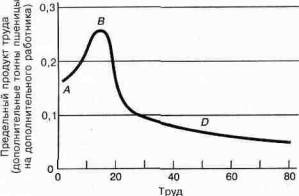 1. В таблице, представляющей производственную функцию, перечисляются объемы выпуска, которые могут быть произведены с различными комбинациями количеств земли и труда. Убывающая отдача одного из переменных (изменяющихся) факторов при фиксированных (постоянных) прочих факторах может быть определена по убыванию предельных продуктов в данной строчке или 'столбце таблицы.