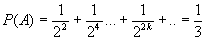 W = [0,1] .Далее, так как игроки продолжают подбрасывание до тех пор, пока не выпадет герб. Обозначим А событие “ выиграл первый игрок (бросавший первым)” .