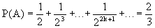 Поскольку, если первый игрок выигрывает при бросании с номером 2k+1, дальнейшее продолжение игры теряет смысл, то разумно принять следующие вероятности
