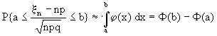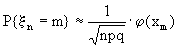 Затруднения возникают также при малых значениях p и q . Иногда при больших значениях n удается заменить формулу (12.1) какой-либо приближенной асимптотической формулой. Приведем три предельные теоремы, содержащие асимптотические формулы для (12.1) и (13.1) при ![]()