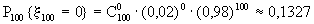 Мы находимся в условиях применимости схемы Бернулли со следующими параметрами: p = 0,02 ; n = 100 ; m = 0 ;