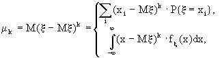 Начальным моментом k-го порядка (k=1, 2, ...) распределения случайной величины x (если он существует) называют действительное число a k = a k (x ), равное математическому ожиданию случайной величины x k, определенное по формуле