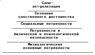 Думается, что позиции, изложенные в этих концепциях нуждаются в уточнении. Безусловно, биологический фактор является важнейшей предпосылкой развития личности, но решающая роль принадлежит ее социальному опыту, приобретенным знаниям, умениям и навыкам. В процессе развития личности изменяются ее потребности и возможности их удовлетворения. Это противоречие между потребностями и возможностями удовлетворения представляет движущую силу развития личности. Источником активности личности являются ее потребности, определяющие ее деятельность в направлении, ведущем к их удовлетворению. Побуждая личность к определенной активности, потребности не являются чем-то изначально данным человеку, а формируются в процессе воспитания, в широком смысле в процессе социализации, а их удовлетворение выступает в виде активной целенаправленной деятельности. В современной психологии часто говорится об иерархии потребностей человека или ступенях их развития (А. Маслоу). Эта иерархия имеет следующий вид.
